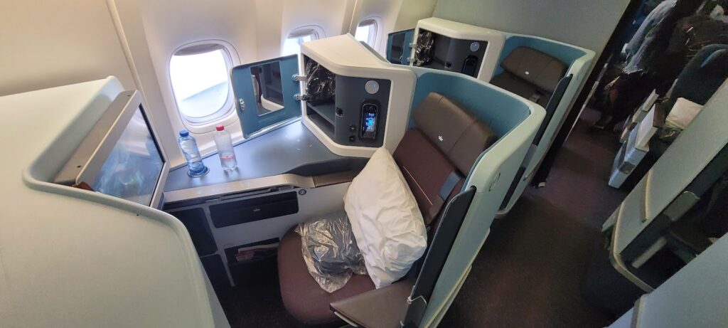 This cabin and its seating actually most closely resemble United Polaris business class. The booking tool I used didn’t reflect the 1-2-1 layout, but you can always tell by the seat numbers if it is all aisle seating, the seats are labelled A-D-G-K.