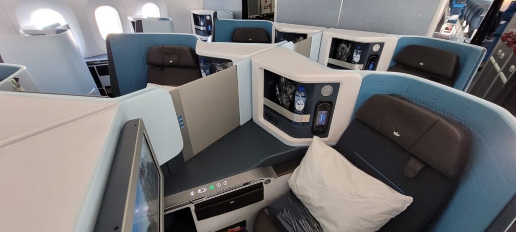 To date, I’ve only flown KLM business class flights in the 2-2-2 configuration. This was really nice, having the comfy configuration that I am used to on Air Canada’s Signature Business Class and United Polaris Business Class cabins.