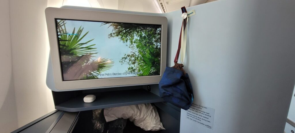 The seat had a somewhat unique feature in that it had a shoulder harness for takeoff and landing. I rather like this as some other Business Class seats have airbags in their lap seatbelts, which can be very bulky. With the three-point harness, you can remove it immediately after takeoff.